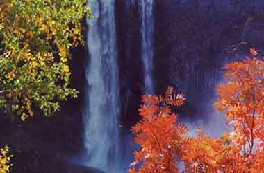 长白瀑布是三江之源最为壮观的瀑布。它位于天池北侧,乘槎河的尽头。当乘槎河流完全程1250米后,滔滔河水以雷霆万钧之势,带着万马奔腾的吼声从陡峭的悬崖纵身一跃,完成了一次生命的历程一一这就成了著名的长白瀑布。